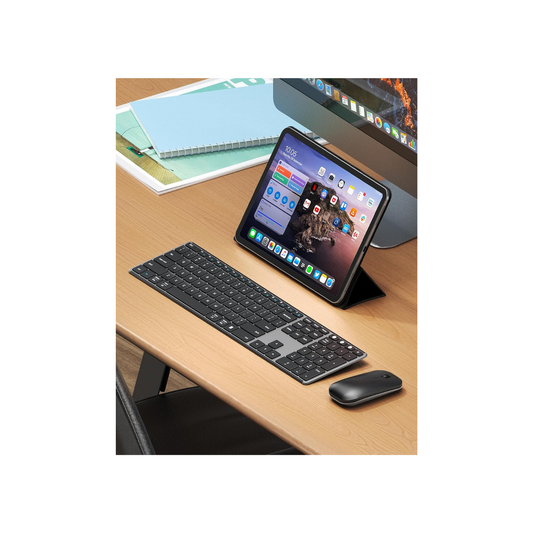 seenda Wireless Bluetooth Keyboard and Mouse Combo (USB + Dual BT), SKM64-3 Multi-Device Rechargeable Slim Keyboard and Mouse, Compatible for Win 7/8/10, MacBook Pro/Air, iPad, Tablet - Black Gray