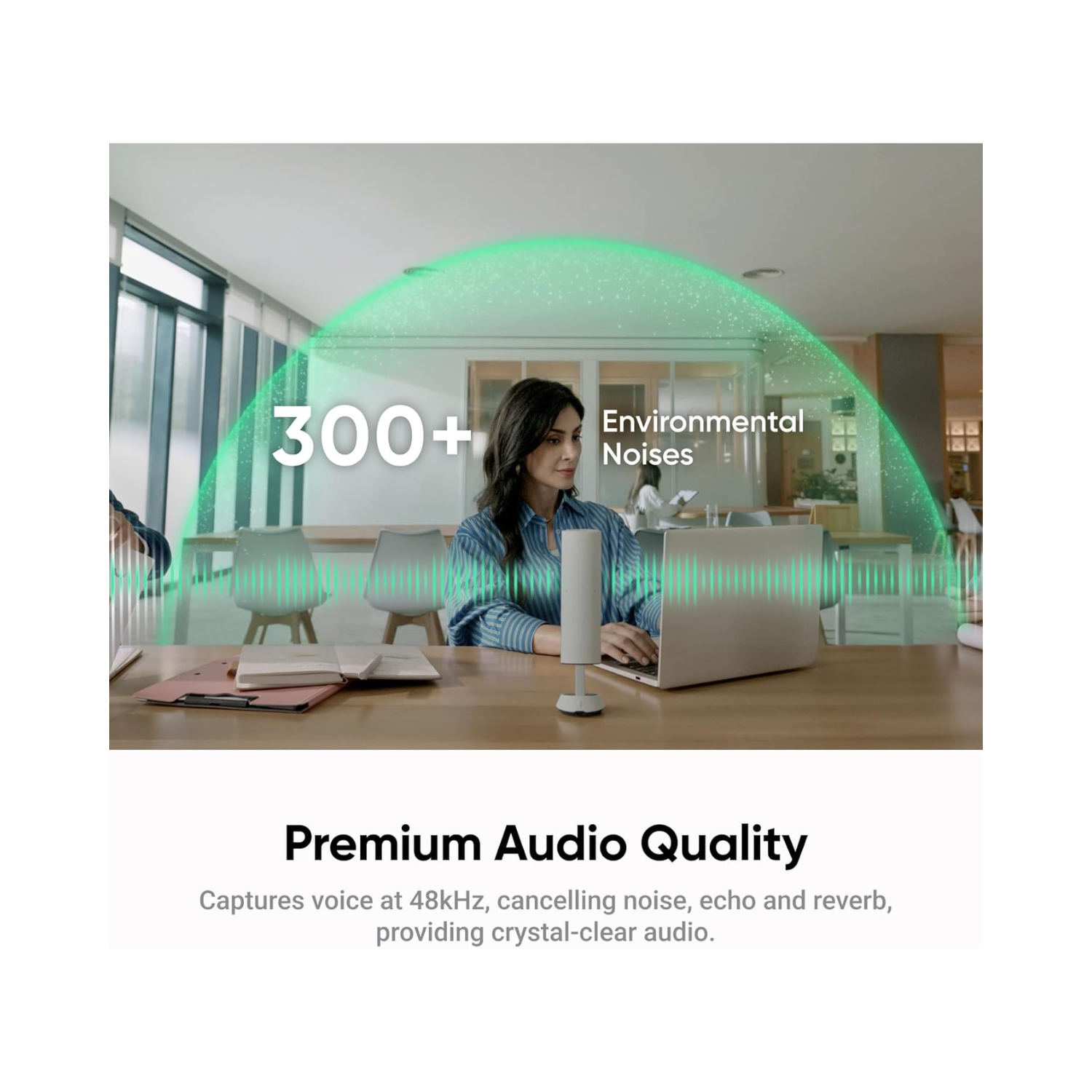 Premium Audio Quality: Equipped with AI audio algorithms, Insta360 wave eliminates environmental noises, cancels echo and reverberation.