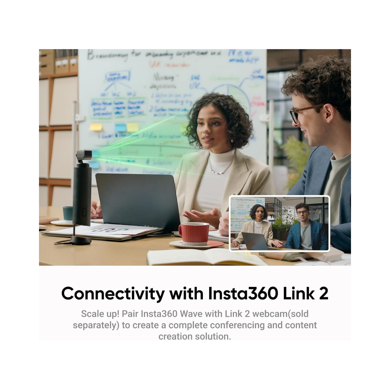 Supports Insta360 Link 2: Using the latest in Insta360's conferencing ecosystem, mount Insta360 Link 2 (sold separately) on Insta360 Wave to get a complete audio-visual solution.