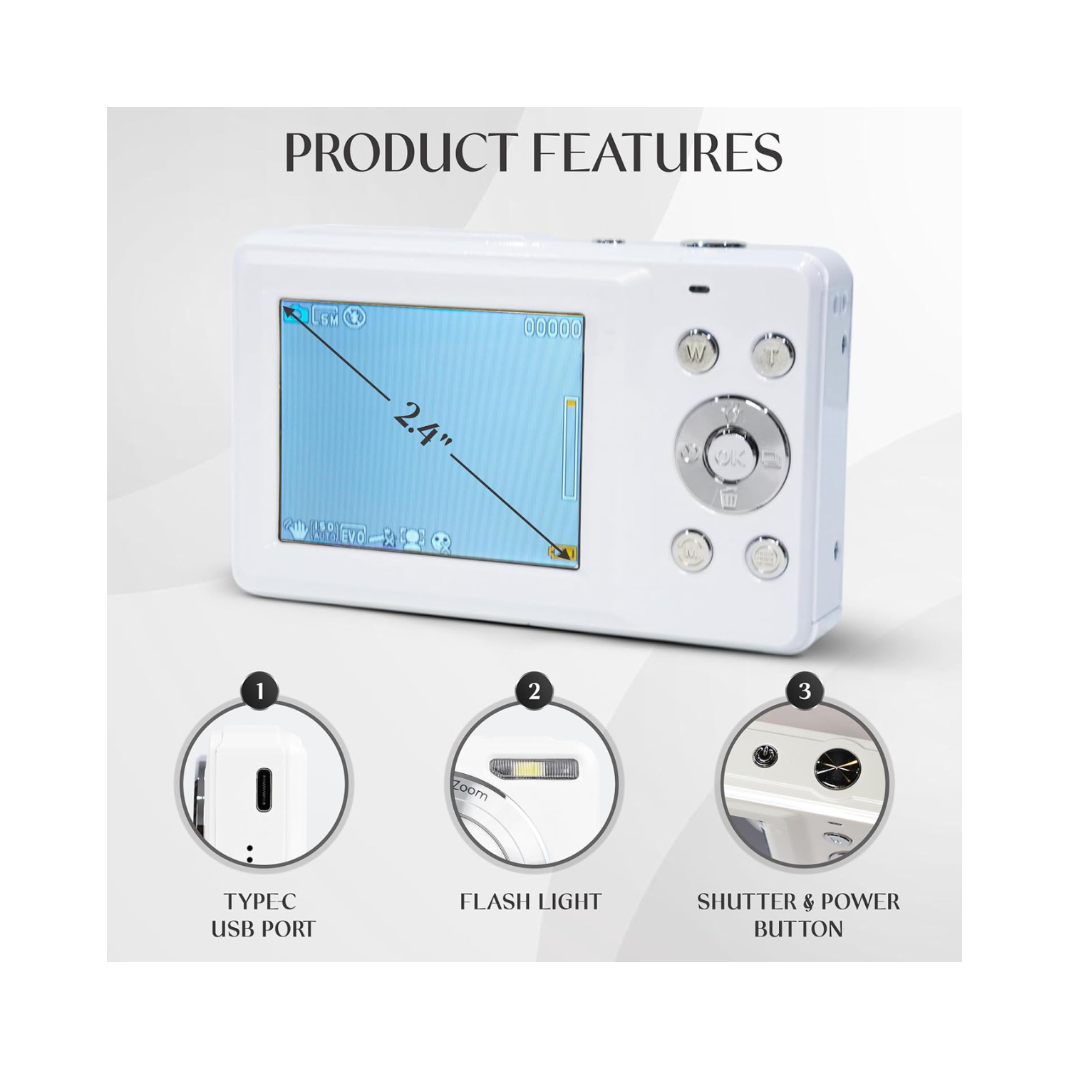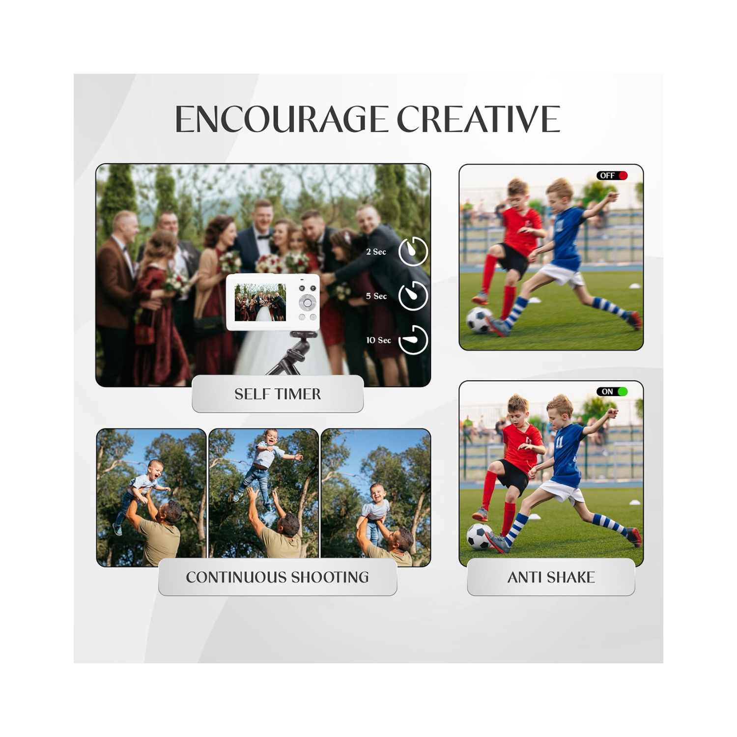 Capture fun, nostalgic photos up to 44MP and record videos in 1080P, 720P, or 480P with this classic digital point-and-shoot camera. Ideal for capturing travel moments, daily adventures, or special occasions, this small digital camera offers sharp and vibrant shots with a touch of old-school charm. Its high resolution ensures your photos and videos stand out with clarity and style.